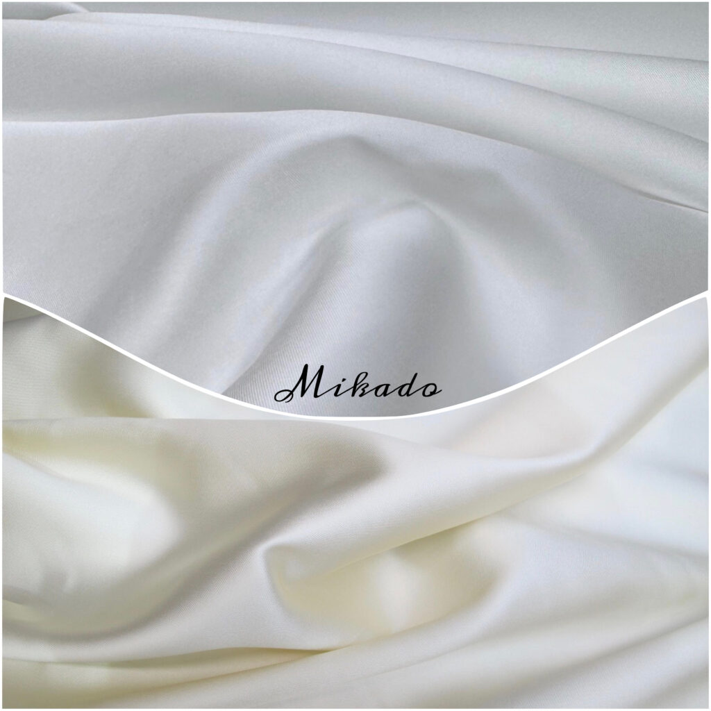 Here’s the simplest, most accurate guide based on the real fabrics used in bridal gowns: crepe, mikado, and tulle.